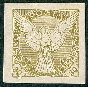 Jednalo se o známku novinovou, konkrétně NV6N - 30 h, u známek novinových z naší první emise, která představuje Sokola v letu. Patří k naší první emisi novinových známek a některé exempláře patří mezi hledané. Jedná se většinou o svislá 20h a 10h, dále meziarší vodorovná, kde jsou různé kombinace s jinými známkami a známkami z jiných emisí, např. kombinované meziarší novinové a známek Hradčan, též takzvané kříže z meziarší - (soutisky 2 meziarší) dále mezi hledané exempláře z emise novinových známek patří zkusmé tisky této emise, tisky makulaturní, desková čísla patří také za zajímavost, dále se mnozí sběratelé věnují nepřepážkovému a neúřednímu zoubkování, odchylkám barev jednotlivých známek, typologii, deskovým vadám a nevydaným známkám.