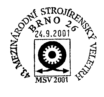 Vyšší Brod, okres České Budějovice (11) 160. VÝROČÍ POŠTY ČECHTICE, používáno: 1.5.-2.5.2001, pošta ČECHTICE, okres Benešov (10) VLADIMÍR SUCHÁNEK - GRAFIKA A ZNÁMKOVÁ TVORBA, POŠTOVNÍ MUZEUM, používáno: 21.4.2001, pošta PRAHA 1, okres Praha 1 (příleřitostná přepážka v Poštovním muzeu) (09) 150 LET VLAKOVÝCH POŠT V ČECHÁCH WIEN-BRNO-PRAHA a PRAHA-BRNO-WIEN (oboustranné razítko vlakových pošt), používáno: 7.4.2001, VLAKOVÁ POŠTA, (zásilky k orazítkování zaslat na adresu: 150 LET VLAKOVÝCH POŠT, 225 00 PRAHA 025 s uvedením požadovaného otisku Vídeň-Praha nebo Praha-Vídeň) (08) 860 LET MĚSTA, 160. VÝROČÍ POŠTY OTROKOVICE, používáno: 2.-20.4.2001, pošta OTROKOVICE 2, okres Zlín (07) VELIKONOČNÍ POŠTA, používáno: 2.4.-16.4.2001, pošta KRASLICE, okres Cheb (06) SLEZSKÁ UNIVERZITA V OPAVĚ, používáno: 14.2.2001, pošta OPAVA 1, okres Opava (05) NEJKRÁSNĚJŠÍ ČESKÁ POŠTOVNÍ ZNÁMKA ROKU 2000, POŠTOVNÍ MUZEUM, používáno: 10.2.2001, pošta PRAHA 1, okres Praha 1 (04) VII. ZIMNÍ SPORTOVNÍ HRY ZAMĚSTNANCU ČESKÉ POŠTY, používáno: 13.-15.1.2001, pošta HARRACHOV V KRKONOŠÍCH, okres Jičín (příležitostná přepážka v hotelu JUNIOR FIT-FUN)(03) 150 LET ZALOŽENÍ POŠTY SVINOV, používáno: 2.-19.1.2001, pošta OSTRAVA 21, okres Ostrava (mimo sobot a nedělí) (02) VSTUP DO TŘETÍHO TISÍCILETÍ MILÉNIUM BRNO 2000/2001, používáno: 1.1.2001, pošta BRNO 1, okres Brno 1 (příležitostná přepážka do hradu ŠPILBERK) (01) PF 2001 V NOVÉM MILÉNIU, používáno: 1.1.2001, pošta PRAHA 012-HRAD, okres Praha 012-Hrad |