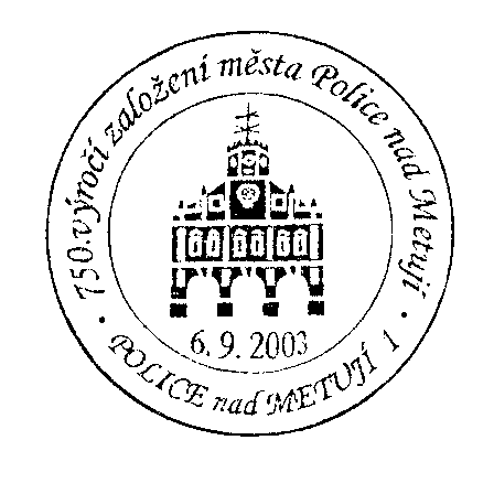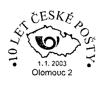 539 42 SVRATOUCH, obvod Havlíčkův Brod (101) 85. VÝROČÍ ZALOŽENÍ POŠTOVNÍHO MUZEA, PRAHA 1, používáno: 18.12.2003, pošta PRAHA 1 (příležitostná přepážka v Poštovním muzea), obvod Praha-Střed (100) BRATŘI WRIGHTOVÉ, 100 LET, používáno: 17.12.2003, pošta 110 00 PRAHA 1, obvod Praha-Střed (99) 1115, 888 LET OBCE, 2003, TLUČNÁ, používáno: 10.-19.12.2003, pošta TLUČNÁ, obvod Plzeň-Sever (98) VÁNOCE, používáno: 8.-24.12.2003, pošta 362 62 BOŽÍ DAR, obvod Karlovy Vary (2 exempláře bez rozlišení) (97) TRADIČNÍ VÁNOCE V BRNĚ, používáno: 1.-23.12.2003, pošta 601 00 BRNO 1, obvod Brno (96) 15. MIKULÁŠSKÁ JÍZDA. LETOHRAD, používáno: 29.11.2003, pošta LETOHRAD, obvod Rychnov nad Kněžnou (95) ČSK, 90 LET KANOISTIKY V ČESKÝCH ZEMÍCH, PRAHA 6, používáno: 29.11.2003, pošta PRAHA 6, obvod Praha-Západ (94) INTEGROVANÁ STŘEDNÍ ŠKOLA POŠTOVNÍ PRAHA, PRAHA 4, SCHOLA PRAGENSIS 2003, používáno: 11.-13.11.2003, pošta PRAHA 4 (příležitostná přepážka v Kongresovém centru), obvod Praha-Jih (93) OTEVŘENÍ POŠTY A PROVOZNÍHO ŘEDITELSTVÍ V REKONSTRUOVANÉ BUDOVĚ, HAVLÍČKůV BROD 2, používáno: 3.11.2003, pošta HAVLÍČKůV BROD 2, obvod Havlíčkův Brod (92) 150. VÝROČÍ POVÝŠENÍ CHRASTI NA MĚSTO, 1853-2003, CHRAST U CHRUDIMĚ, používáno: 29.10.2003, pošta CHRAST U CHRUDIMĚ, obvod Pardubice (91) 50TH ANNIVERSARY CZECHOSLOVAK PHIL. SOC. OF G. B., PRAHA 012-HRAD, používáno: 17.10.2003, pošta PRAHA 012-HRAD, obvod Praha-střed (90) 25 LET PONTIFIKÁTU PAPEŽE JANA PAVLA II., PRAHA 012-HRAD, používáno: 16.10.2003, pošta PRAHA 012 - HRAD, obvod Praha-Střed (89) 113. VELKÁ PARDUBICKÁ ČESKÉ POJIŠŤOVNY, používáno: 11.-12.10.2003, pošta PARDUBICE 2, obvod Pardubice (88) DOTEKY POŠTY A EXILU, POŠTOVNÍ MUZEUM PRAHA 1, používáno: 11.10.2003, pošta PRAHA 1, obvod Praha-střed (na příležitostné poštovní přepážce v Poštovním muzeu) (87) FAKULTA DOPRAVNÍ ČVUT V PRAZE, 10. VÝROČÍ ZAHÁJENÍ VÝUKY, PRAHA 1, používáno: 7.-13.10.2003, pošta PRAHA 1, obvod Praha-Střed (86) INVEX 2003 VÝSTAVNÍ PŘEPÁŽKA, BRNO 26, používáno: 6.10.2003, pošta BRNO 26, obvod Brno (85) ŽELEZNICE TURNOV-JIČÍN, 1903-2003, 100 LET, ROVENSKO POD TROSKAMI, používáno: 27.-28.9.2003, pošta ROVENSKO POD TROSKAMI, obvod Jičín (84) DEN ŽELEZNICE ČESKÁ TŘEBOVÁ 2, používáno: 27.9.2003, pošta ČESKÁ TŘEBOVÁ 2, obvod Svitavy (83) 85 LET POŠTY ČESKÝCH SKAUTů, POŠTOVNÍ MUZEUM, PRAHA 1, používáno: 27.9.2003, pošta PRAHA 1, obvod Praha-střed (příležitostná poštovní přepážka v Poštovním muzeu v Praze) (82) 1858, ÚSTECKO-TEPLICKÁ DRÁHA, 145 LET, ATE, ÚTD, TEPLICE 2, používáno: 27.9.2003, pošta TEPLICE 2, obvod Teplice (81) 1858, ÚSTECKO-TEPLICKÁ DRÁHA, 145 LET, ATE, ÚSTÍ NAD LABEM 2, používáno: 26.-28.9.2003, pošta ÚSTÍ NAD LABEM 2, obvod Teplice (příležitostná přepážka v historickém poštovním voze umístěném v prostorách DKV Ústí nad Labem - Západní nádraží (80) POŠTOVNICTVÍ NA HODONÍNSKU, MASARYKOVO MUZEUM, HODONÍN 1, používáno: 25.9.2003 (-?), pošta HODONÍN 1, obvod Hodonín (79) ČASTOLOVICE, RYCHNOV N/KN, SOLNICE, 110, 1893, 2003, SOLNICE, používáno: 22.9.2003, pošta SOLNICE, obvod Rychnov nad Kněžnou (78) 300 LET GYMNÁZIA, 1703-2003, BENEŠOV U PRAHY, používáno: 20.9.2003, pošta BENEŠOV U PRAHY, obvod Benešov u Prahy (77) 45. MEZINÁRODNÍ STROJÍRENSKÝ VELETRH, MSV 2003, BRNO 26, používáno: 15.-19.9.2003, pošta Brno 26, obvod Brno (příležitostná přepážka v areálu brněnského výstaviště) (76) DEN OSN, POŠTOVNÍ SPRÁVA SPOJENÝCH NÁRODů, SBĚRATEL, PRAHA 7, používáno: 14.9.2003, pošta PRAHA 7, obvod Praha- západ (příležitostná přepážka v areálu Výstaviště v Holešovicích) (75) KAŽDOROČNÍ SETKÁNÍ SBĚRATELů VÝCHOD-ZÁPAD, SBĚRATEL, SAMMLER, COLLECTOR, PRAHA 7, používáno: 12.-14.9.2003, pošta PRAHA 7, obvod Praha-západ (příležitostná přepážka na Mezinárodním veletrhu Sběratel na Výstavišti v Praze 7-Holešovice) (74) FESTIVAL JIČÍN - MĚSTO POHÁDKY, JIČÍN 1, používáno: 8.-13.9.2003, pošta JIČÍN 1, obvod Jičín (73 750. VÝROČÍ MĚSTA POLICE NAD METUJÍ, POLICE NAD METUJÍ 1, používáno: 6.9.2003, pošta POLICE NAD METUJÍ 1, obvod Trutnov (příležitostná poštovní přepážka ve vestibulu radnice) (72) VIZOVICKÉ TRNKOBRANÍ, VIZOVICE, používáno: 25.-30.8.2003, pošta VIZOVICE, obvod Zlín (71) VÁCLAV ŠPÁLA, 1885-1946, PRAHA 1, používáno: 24.8.2003, pošta PRAHA 1, obvod Praha-střed (70) ČESKÁ REPUBLIKA, BALONOVÁ SHOW, CHRUDIM 1, používáno: 9.-10.8.2003, pošta CHRUDIM 1, obvod Chrudim (69) OTEVŘENÍ POŠTY A PROVOZNÍHO ŘEDITELSTVÍ V REKONSTRUOVANÉ BUDOVĚ, používáno: 4.8.2003, pošta JIČÍN 1, obvod Jičín (68) 125 LET POŠTY DÍRNÁ, DÍRNÁ, používáno: 1.8.2003, pošta DÍRNÁ, obvod (67) SLAVNOSTI PERNŠTEJNSKÉHO PANSTVÍ, S.K. PERNŠTEJN NEDVĚDICE, 75, 1928-2003 SK PERNŠTEJN NEDVĚDICE, používáno: 4.-5.7.2003, pošta NEDVĚDICE, obvod Jihlava (66) PRAGUE 2003 115 IOC SESSION, používáno: 1.-4.7.2003, pošta PRAHA 8, obvod Praha-sever (příležitostná přepážka v hotelu HILTON) (65) EUROPEAN MEETING OF YOUNG PHILATELISTS 2003, EVROPSKÉ SETKÁNÍ MLADÝCH FILATELISTů, používáno: 26.-29.6.2003, pošta SVITAVY 1, obvod Svitavy (64) JOSEF DOBROVSKÝ, 1753, HORŠOVSKÝ TÝN, používáno: 25.-27.6.2003, pošta HORŠOVSKÝ TÝN, obvod Domažlice (63) EUROPEAN CHAMPIONSHIP, používáno: 25.6.2003, pošta PLZEŇ 1, obvod Plzeň (62) CHEB-MARKTREDWITZ 120, 1883-2003, používáno: 21.6.2003, pošta CHEB 2, obvod Cheb (61) POŠTOVNÍ MUZEUM PRAHA 1 A S PODPISEM UMĚLCE LIESLER 2002, používáno: 21.6.2003, pošta PRAHA 1, obvod Praha-střed (příležitostná přepážka v Poštovním muzeu) (60) 100 LET ELEKTRIFIKOVANÉ TRATĚ TÁBOR - BECHYNĚ 1903-2003, používáno: 21.6.2003,