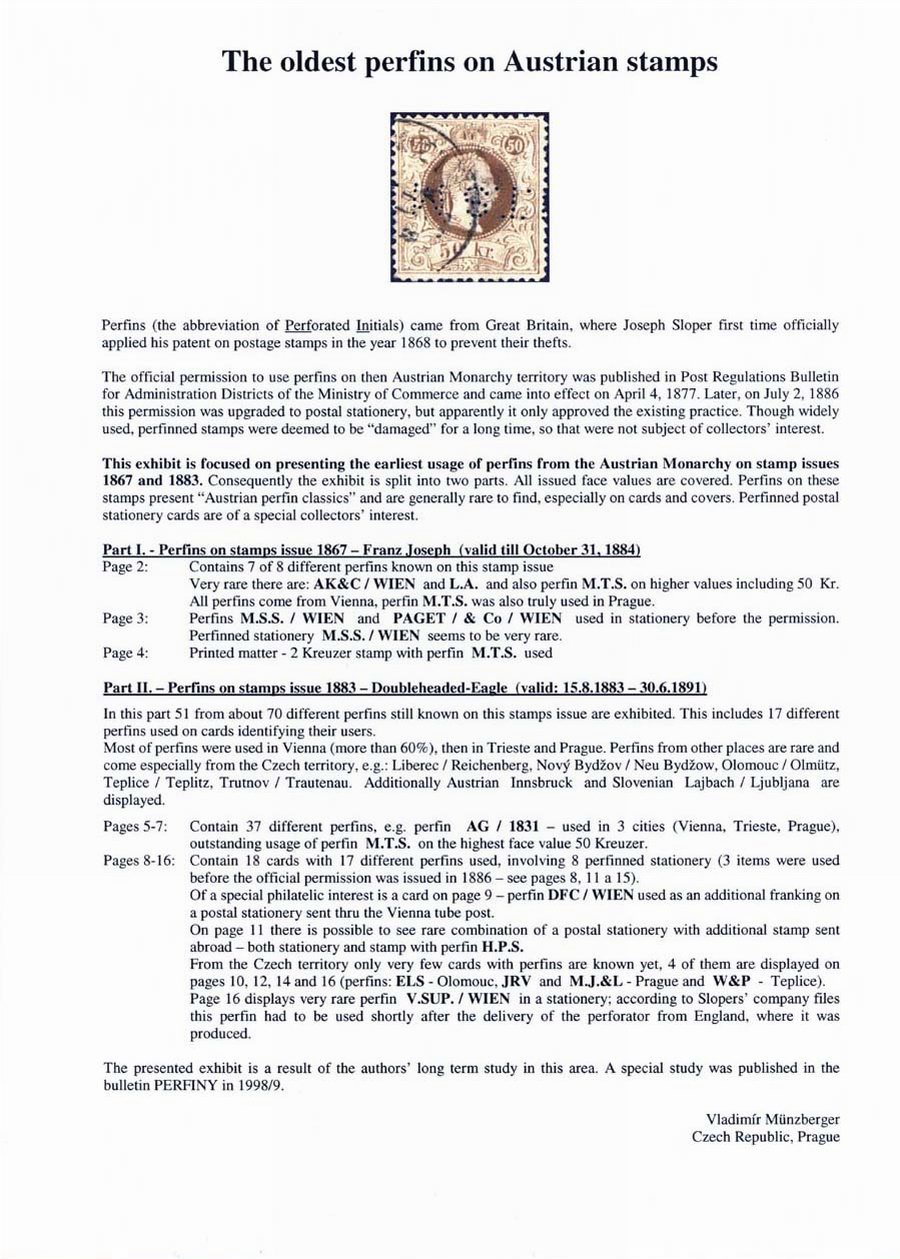 | EXHIBIT: THE OLDEST PERFINS ON AUSTRIAN STAMPS | ||||||||||||