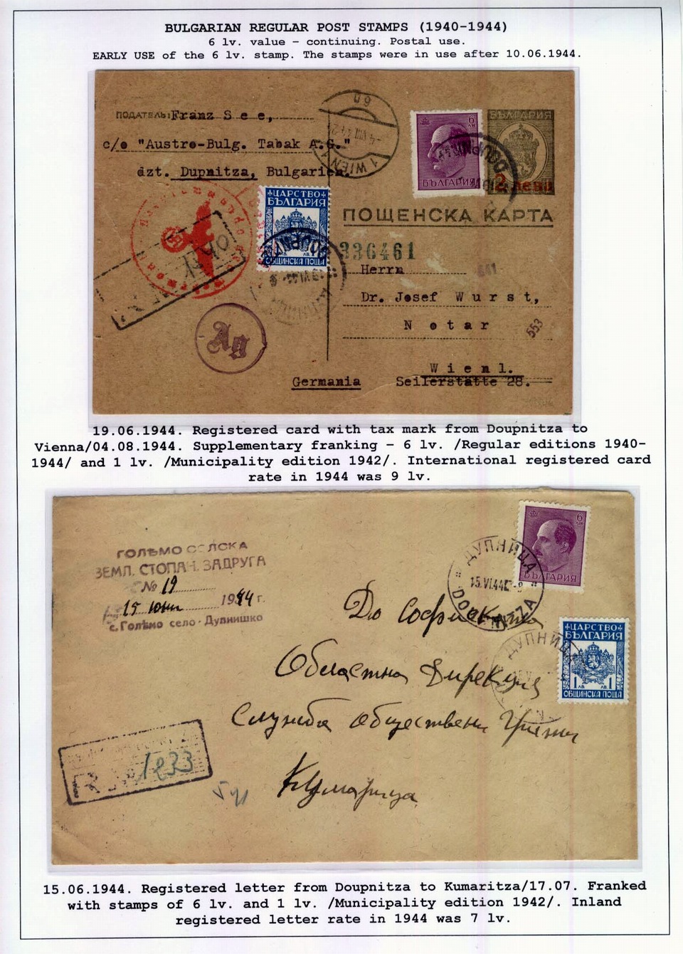 EXHIBIT:  BULGARIAN REGULAR POST STAMP (1940 - 1944)