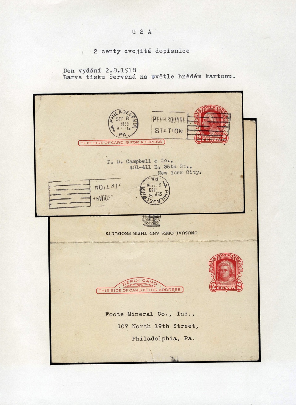 EXHIBIT:  POSTAL STATIONERY USA - POSTCARDS