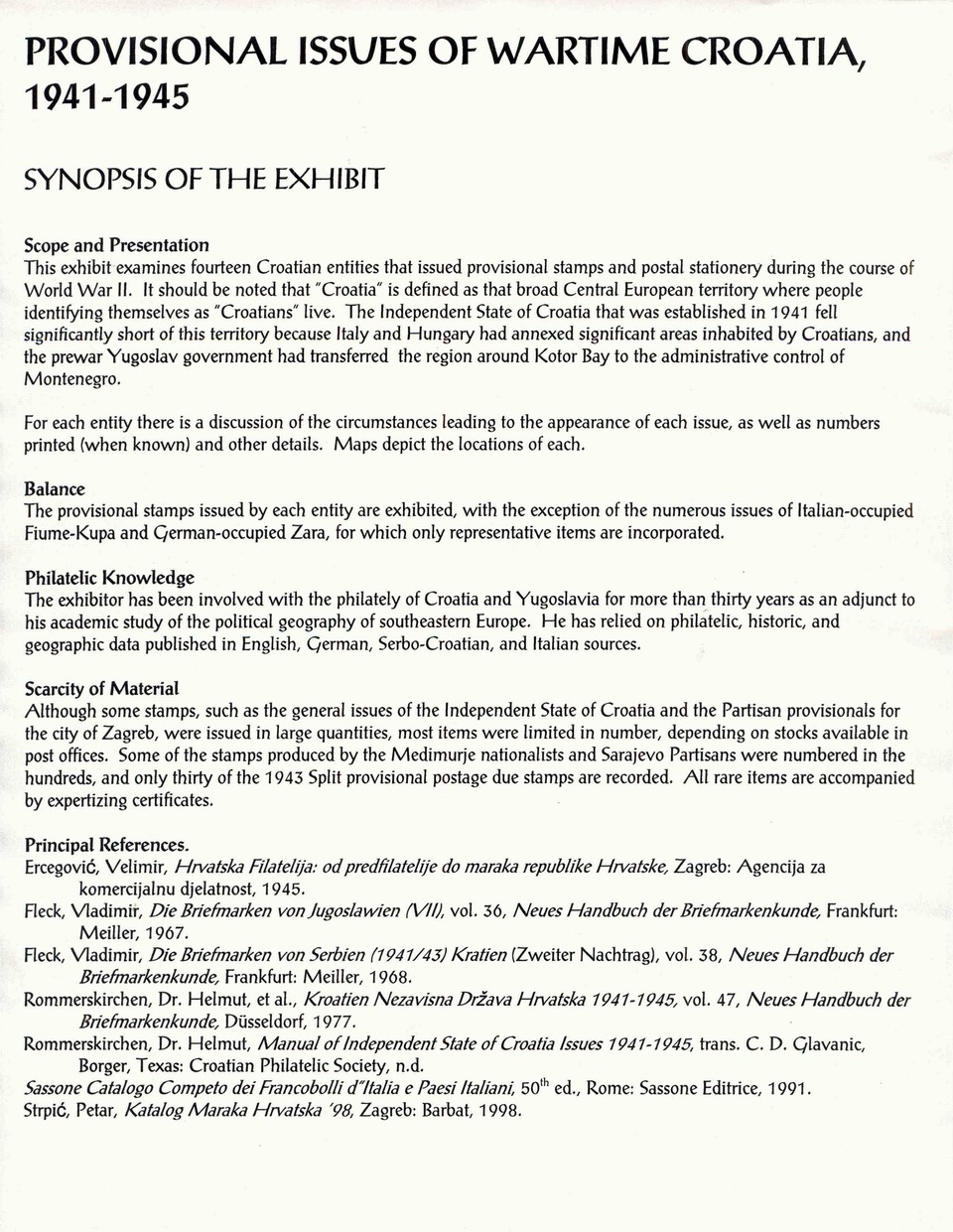 | EXHIBIT: PROVISIONAL ISSUES OF WARTIME CROATIA 1941 - 1945 | ||||||||||||