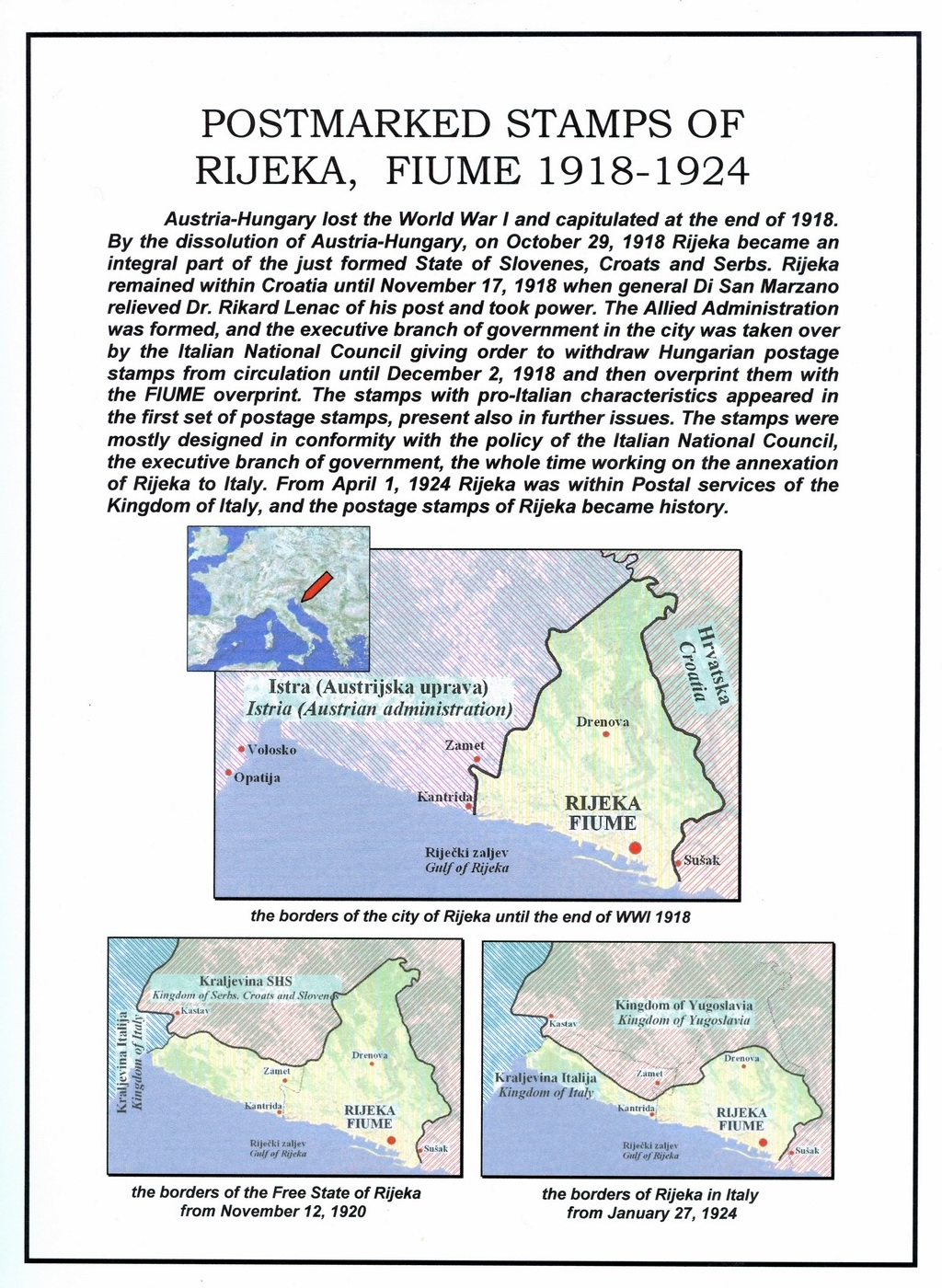 | EXHIBIT: POSTMARKED STAMPS OF RIJEKA, FIUME 1918 - 1924 | ||||||||||||