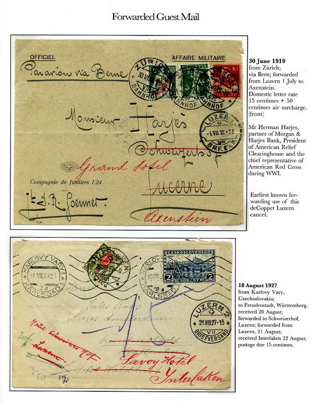 | EXHIBIT: H0TEL SCHWEIZERHOF, LUZERN, SWITZERLAND / POSTAL SERVICE AT A FIVE STAR HOTEL 1872 - 1950 | ||||||||||||