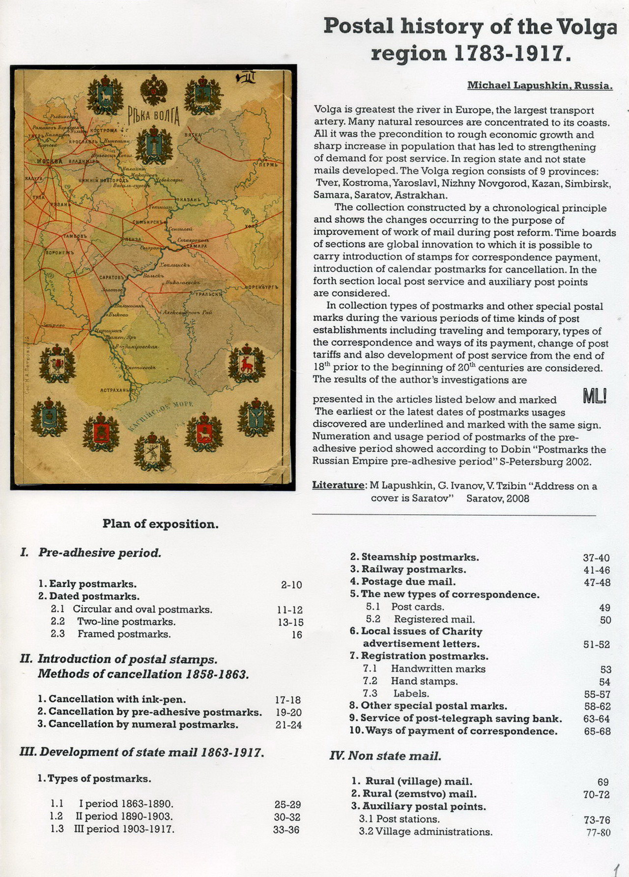 | EXHIBIT: POSTAL HISTORY OF VOLGA REGION 1783 - 1917 | ||||||||||||