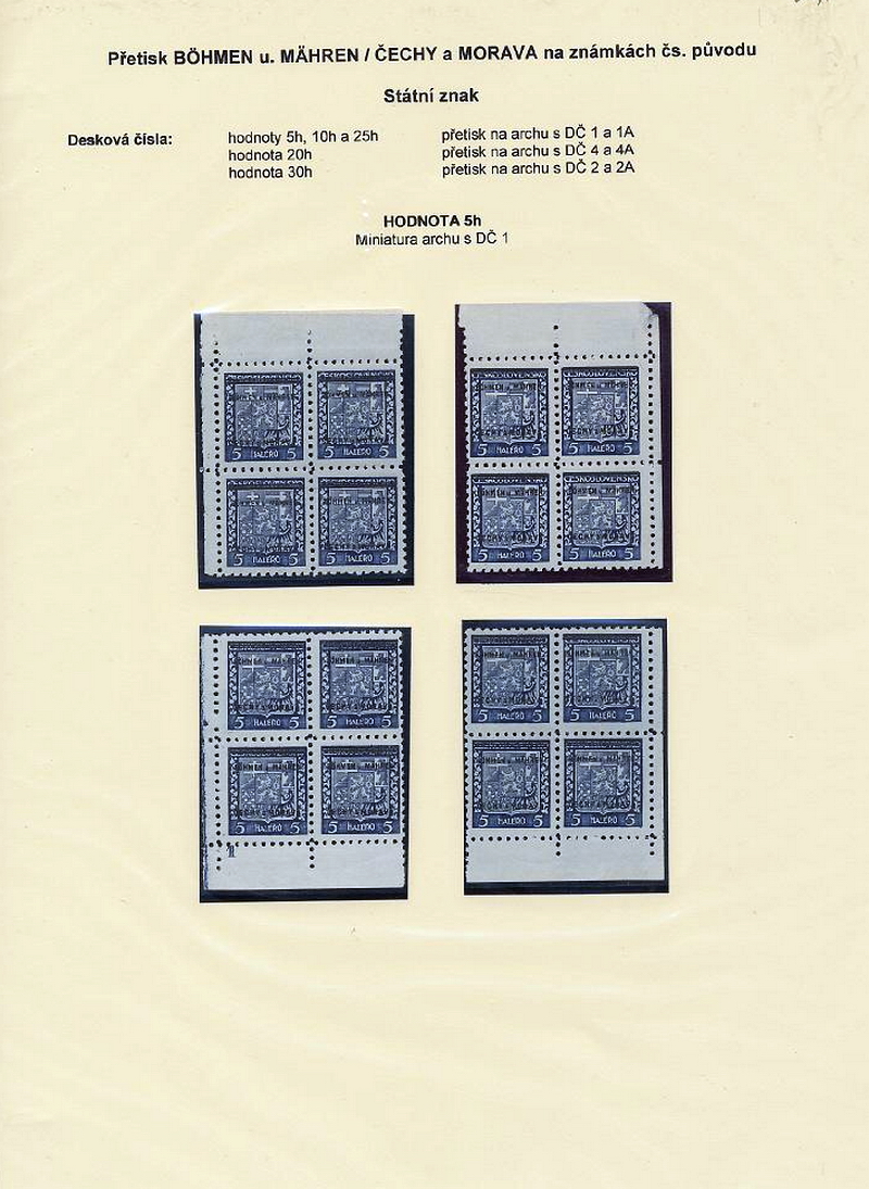EXHIBIT:  OVERPRINTS "BÖHMEN U. MÄHREN" ON CZECHOSLOVAK STAMPS