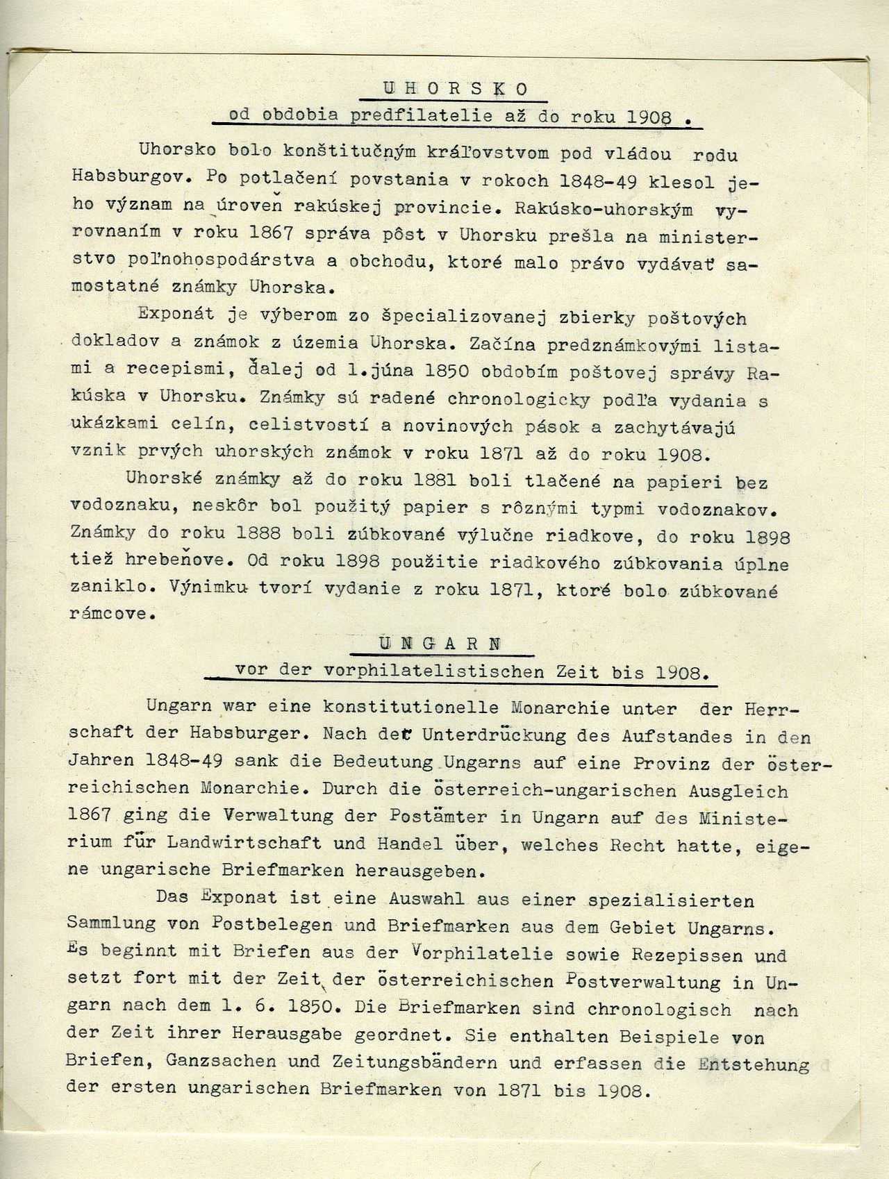 | EXHIBIT: HUNGARY UNTIL 1908 | ||||||||||||
