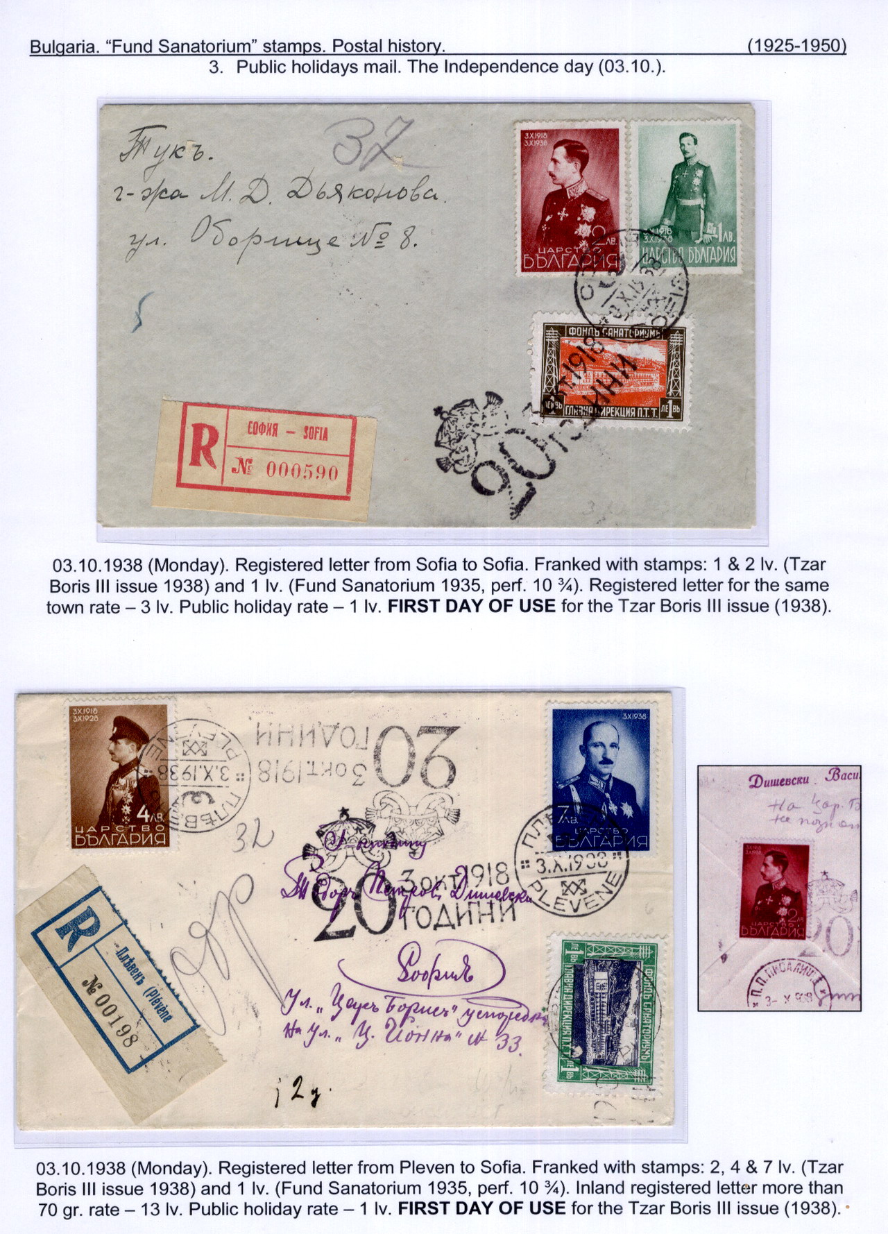 | EXHIBIT: BULGARIAN STAMPS "FUND SANATORIUM" (1925 - 1950) POSTAL HISTORY | ||||||||||||